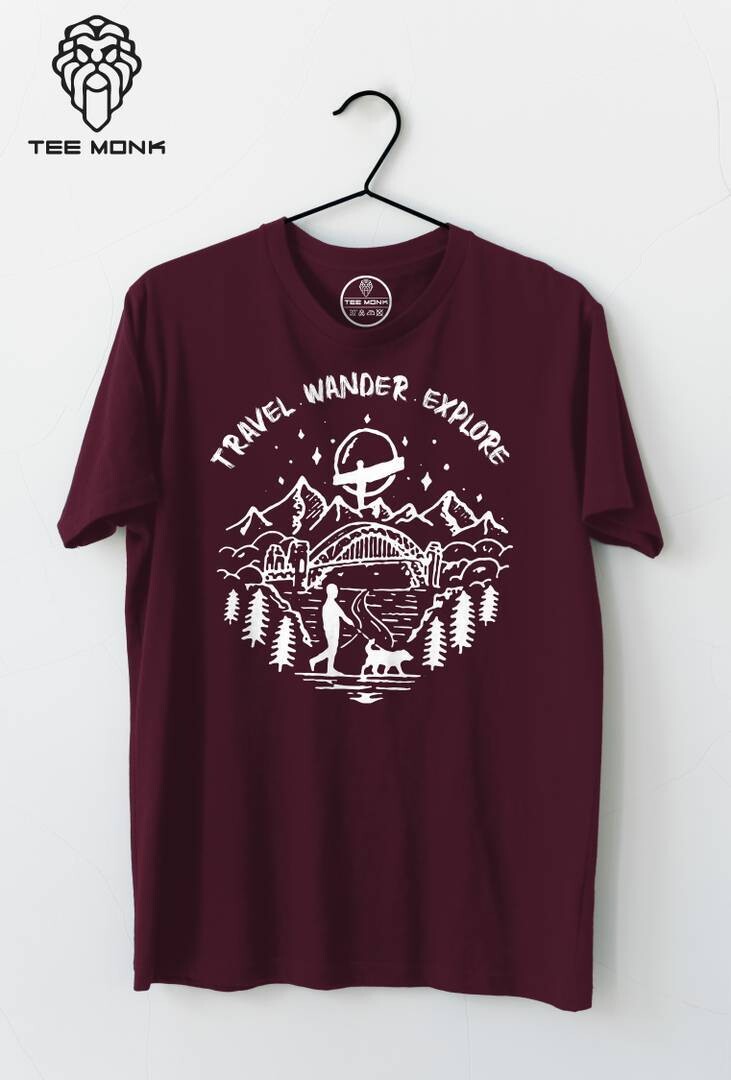 Buy Online Stylish Maroon Cotton Printed Round Neck Tees For Men India Usa