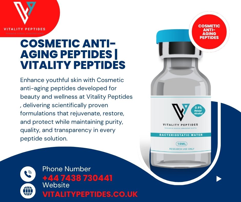 Enhance youthful skin with Cosmetic anti-aging peptides developed for beauty and wellness at Vitality Peptides , delivering scientifically proven formulations that rejuvenate, restore, and protect while maintaining purity, quality, and transparency in every peptide solution.