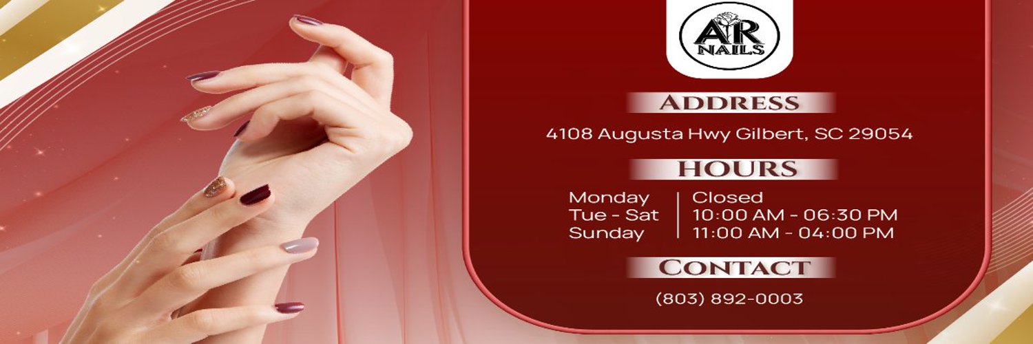 Welcome to AR Nails, located at 4108 Augusta Hwy, Gilbert, SC 29054, where polish, pampering, and people come together in the most beautiful way.- Website: nail salon Gilbert- Address: 4108 Augusta Hwy, Gilbert, SC 29054- Map: https://maps.app.goo.gl/Pv7Yr1wEmvhsNFf86 - Phone: (803) 892-0003- Mail: Aaronrosa2024@gmail.comSocial: https://www.facebook.com/ARNailsSC/https://www.instagram.com/ar_nails_gilbert/https://www.yelp.com/biz/ar-nails-gilberthttps://twitter.com/arnailssccomhttps://www.linkedin.com/in/arnailssccom/https://www.pinterest.com/arnailssccom/https://www.youtube.com/@arnailssccomhttps://sites.google.com/view/arnailssccom/https://bit.ly/m/arnailssccomhttps://arnailssccom.wordpress.com/https://gravatar.com/arnailssccomhttps://500px.com/p/arnailssccomhttps://myspace.com/arnailssccomhttps://hub.docker.com/u/arnailssccomhttps://independent.academia.edu/arnailssccomhttps://inkbunny.net/arnailssccomhttps://knowyourmeme.com/users/ar-nailshttps://drivehud.com/forums/users/arnailssc-com/https://www.blogger.com/profile/10206882091891849523https://www.zazzle.com/mbr/238300564398286210https://www.noteflight.com/profile/b6bdbb7d3209e41737acdcd5d6f57af6d3230180