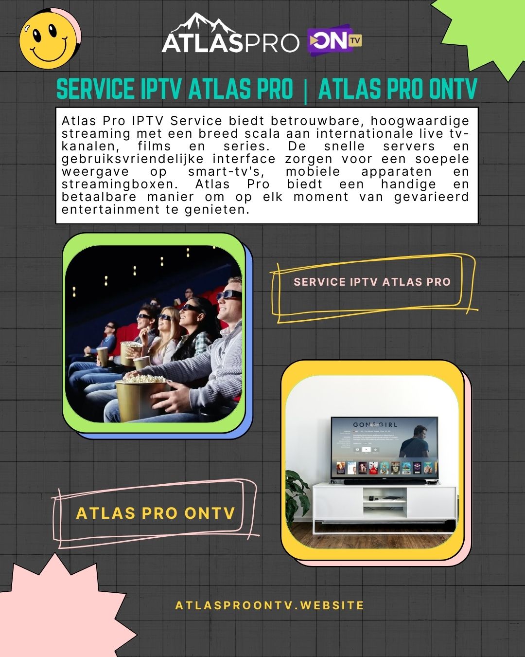 Atlas Pro IPTV Service biedt betrouwbare, hoogwaardige streaming met een breed scala aan internationale live tv-kanalen, films en series. De snelle servers en gebruiksvriendelijke interface zorgen voor een soepele weergave op smart-tv's, mobiele apparaten en streamingboxen. Atlas Pro biedt een handige en betaalbare manier om op elk moment van gevarieerd entertainment te genieten.