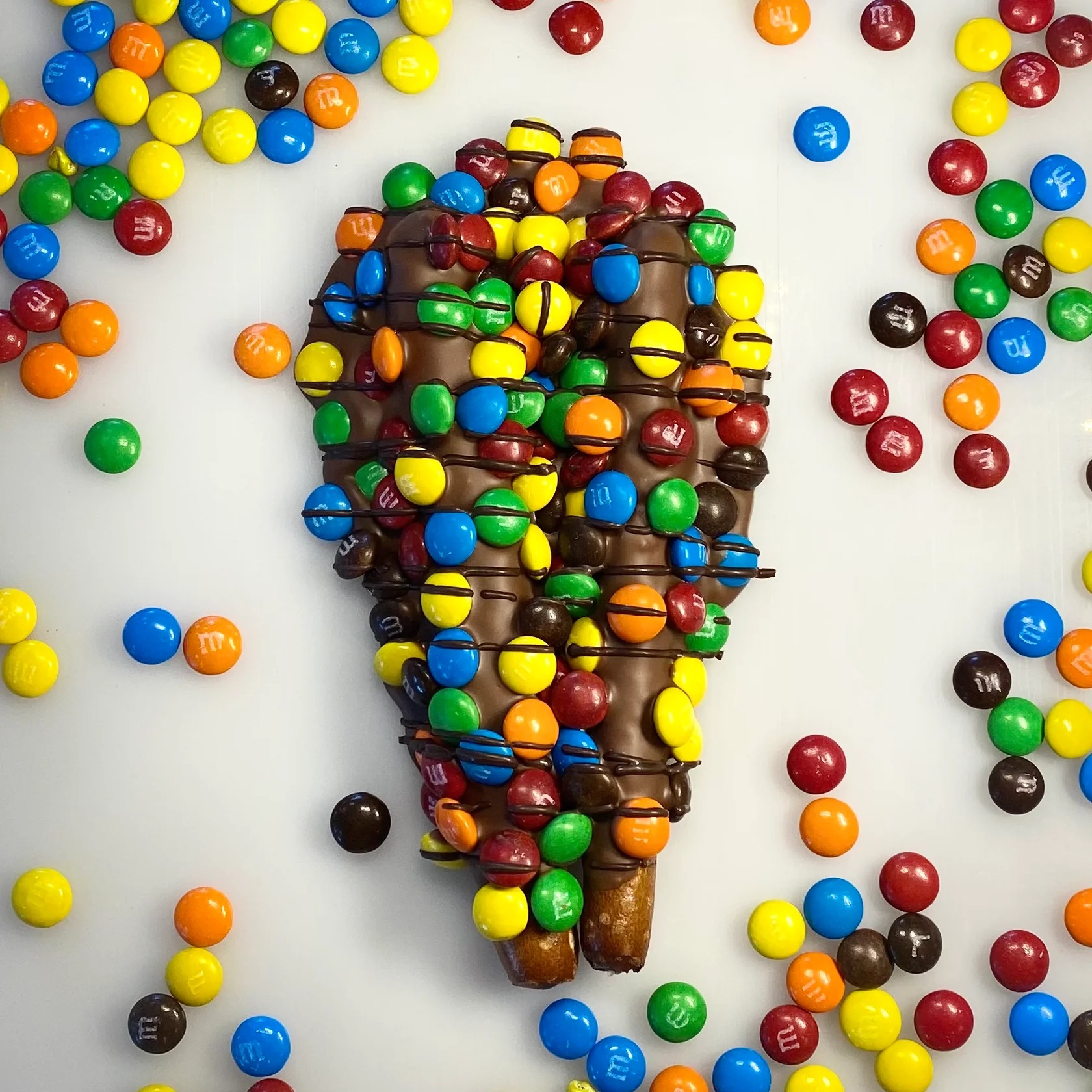 Pretzels dipped in chocolate, generously covered in mini M&M's and drizzled in more chocolate! Don't let the simplicity fool you, Product Price :- $9.99https://sarahsgourmetpretzels.com/products/gluten-free-m-m-meltdown