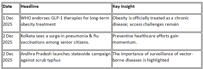 The World Health Organization has public health news stories of significant healthcare impact this year. WHO sanctioned the use of GLP-1 medicines, such as semaglutide and other weight-loss treatments of the same weight, to be officially recognized as a treatment of adult obesity in December 2025. Such a change officially defines obesity as a chronic illness that has to be treated by a doctor and not by changes in lifestyle.