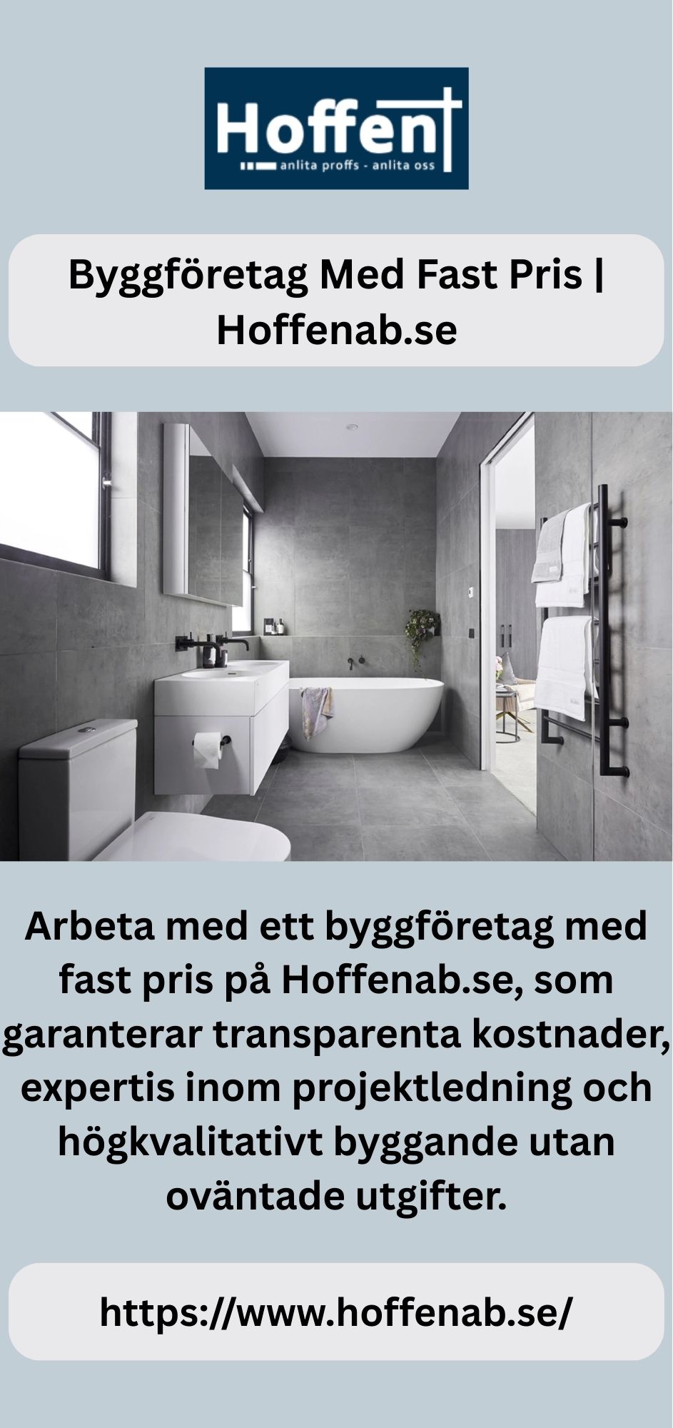 Arbeta med ett byggföretag med fast pris på Hoffenab.se, som garanterar transparenta kostnader, expertis inom projektledning och högkvalitativt byggande utan oväntade utgifter. Byggföretag med fast pris