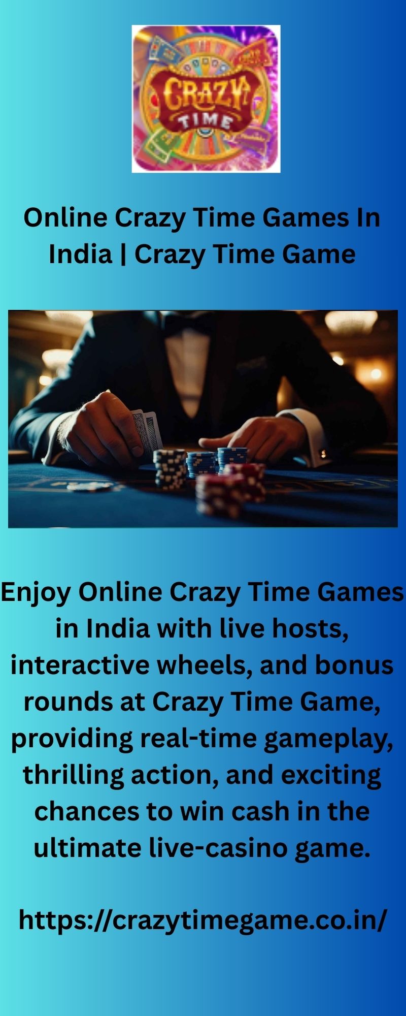 Enjoy Online Crazy Time Games in India with live hosts, interactive wheels, and bonus rounds at Crazy Time Game, providing real-time gameplay, thrilling action, and exciting chances to win cash in the ultimate live-casino game.