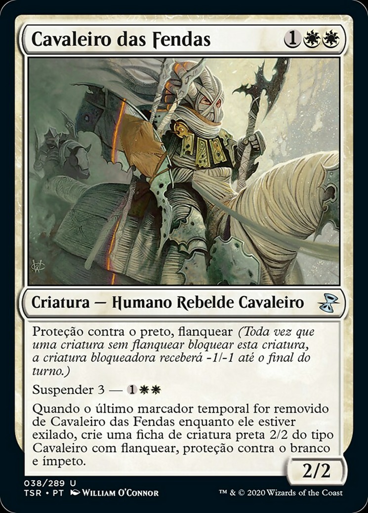 Protection from black; flanking (Whenever a creature without flanking blocks this creature, the blocking creature gets -1/-1 until end of turn.) Suspend 3—{1}{W}{W} When the last time counter is removed from this card while it’s exiled, create a 2/2 black Knight creature token with flanking, protection from white, and haste. Product Price :- € 1.99 https://proxydudes.com/product/riftmarked-knight/