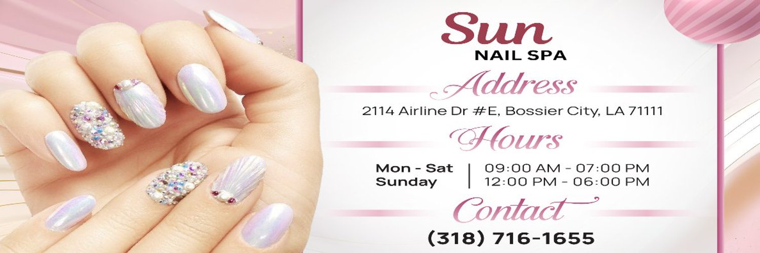 Sun Nail Spa is a top-rated nail salon in Bossier City, LA 71111, offering high-quality nail care in a clean, relaxing, and modern atmosphere. Conveniently located on Airline Dr, we provide professional manicure, pedicure, acrylic nails, gel nails, dipping powder, nail art, and spa treatments designed to pamper and refresh.