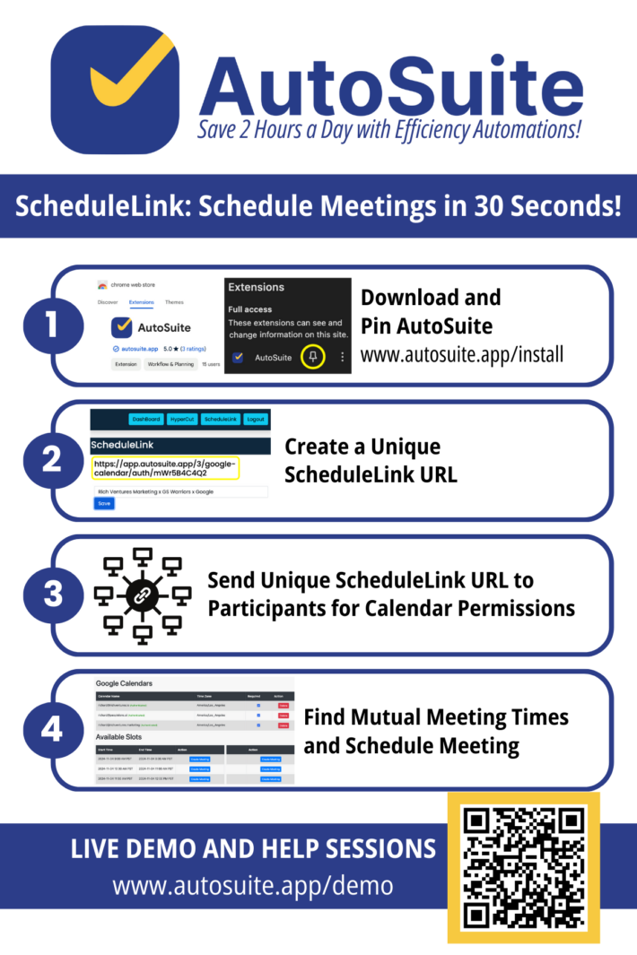 In summary, using tools like Schedulelink For Group Meetings and a Schedule Meetings App can significantly improve the efficiency of scheduling both group and individual meetings. These tools remove the stress of finding a suitable time, minimize the risk of scheduling conflicts, and help businesses focus on their core operations. For an all-in-one scheduling solution, visit the autosuite.app to explore how these tools can enhance productivity and collaboration within your organization.